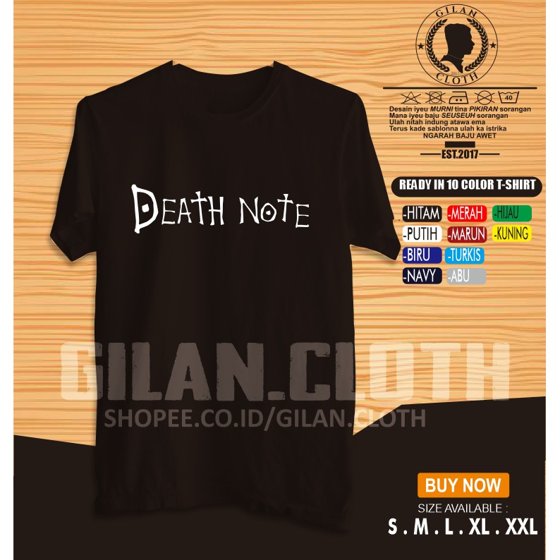 Kaos Baju Anime Death Note Logo L Kira Distro Gilan Cloth